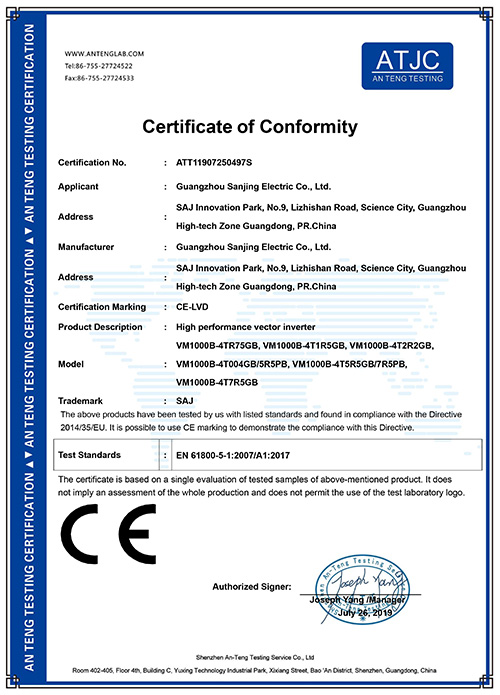 After undergoing an extensive technological upgrade and product optimization, the SAJ VM1000B series general purpose and high-performance variable frequency drives feature a better stability and reliability, ensuring a trusted operation during complex and changeable applications and requirements.